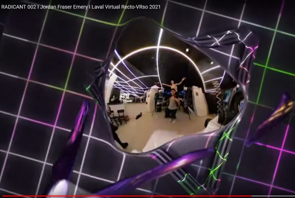 RADICANT résulte d’un travail de recherche — sous la direction de Jacques Ibanez-Bueno — sur les pratiques transgenres et les espaces queer. Dans la filiation d’Absalon, General Idea et Félix Gonzales-Torres, il est proposé, au travers d’un dispositif de réalité virtuelle, de partager l’état intérieur sensible et corporel d’une intersubjectivé de recherche en contexte queer. Par cette mise en re/présentation du réel nous souhaitons expliciter ces mondes queer que nous cherchons ici « à comprendre et à construire en y prenant part et en l’écrivant » (Zitouni Benedikte, 2017). L’expérience se déploie autour de captations 360° de l’artiste Eliott de la Prigari – au sein d’un cabaret burlesque à Bruxelles – et d’un clip video de l’artiste argentin Max Vanns