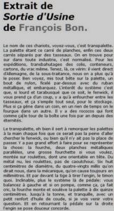 En voyant le transpalette devant les Duchamp mon sang n’a fait qu’un tour car j’avais photographié il y a peu une page du livre à la gloire du transpalette. Je ne la retrouvais plus, j’ai utilisé google à l’arrache et envoyé ceci à ZZ