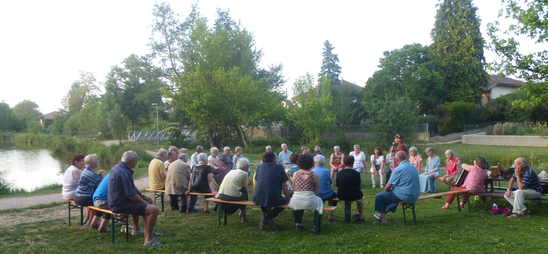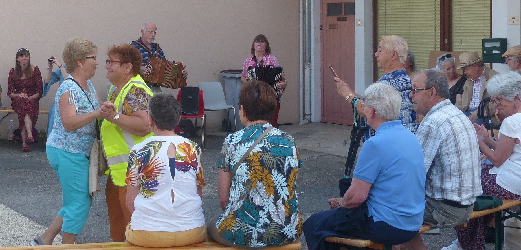 avec Virginie (de Dompierre), Geneviève (de St Etienne en Bresse), Dominique (de Dompierre), Annie à l’accordéon chromatique (de Péronnas), Michel à l’accordéon diatonique (de Jasseron).Et les habitants du village!